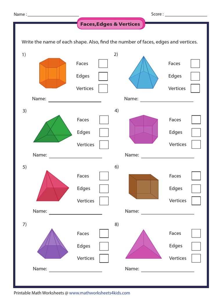 Geometry workbooks for Kids - Math Fun Worksheets Geometry workbooks includes worksheets for kids which help them learn the basic and standard shapes. 2-D shapes and 3-D shapes are well differentiated with lot of colorful pictures and activities.. Properties of 2-D shapes - square, circle, rectangle, triangle, parallelogram,rhombus, trapezoid, pentagon, hexagon and 3-D shapes - cube, cuboid, cone, sphere, cylinder, hemisphere, triangular ...