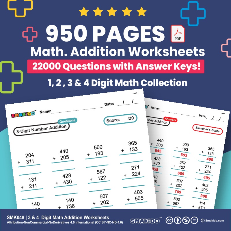 Addition math worksheets with answers. Addition Worksheets / FREE Printable Worksheets - Worksheetfun Free Printable Worksheets. Addition. Addition - 1 Digit. Addition - 1 More. Addition - 10 more. Addition - 2 Digit. Addition - 3 Digit. Addition - 4 Digit. Addition - Add and Match. Math Worksheets Addition Worksheets. Here you can link to all types of addition worksheets, including basic facts, fraction addition, 2-digit, 3-digit, and 4-digit addition. Fraction Worksheets. Index of our basic and advanced-level fraction worksheets. Geometry Worksheets. Learn area, perimeter, symmetry, polygons, solid shapes, and more. Graphing Worksheets Addition Facts Math Practice Worksheet Arithmetic Workbook With Answers ... Knowing addition facts is helpful not only in academics; we frequently use addition in our daily lives too. Just like learning to walk before you can run, learning addition and familiarizing yourself with numbers are building blocks for other math topics taught in school - such as division, long multiplication, fractions and algebra. Addition Worksheets - Math-Drills Addition worksheets from addition facts and two-digit addition to column ... Welcome to the addition worksheets page at Math-Drills.com where we will add to your learning ... but does require the occasional adjustment in previous answers. An example is to add 345 + 678 + 901. First add the 300, 600 and 900 to get 1800, then ...